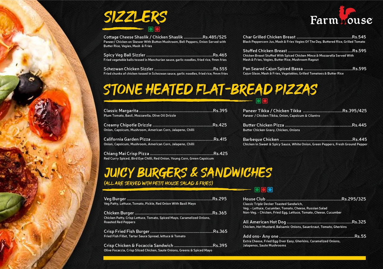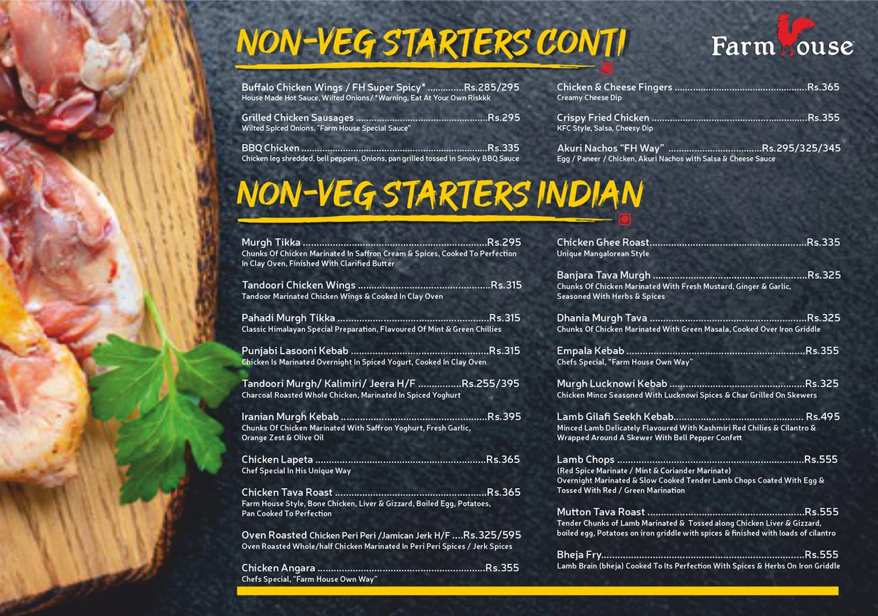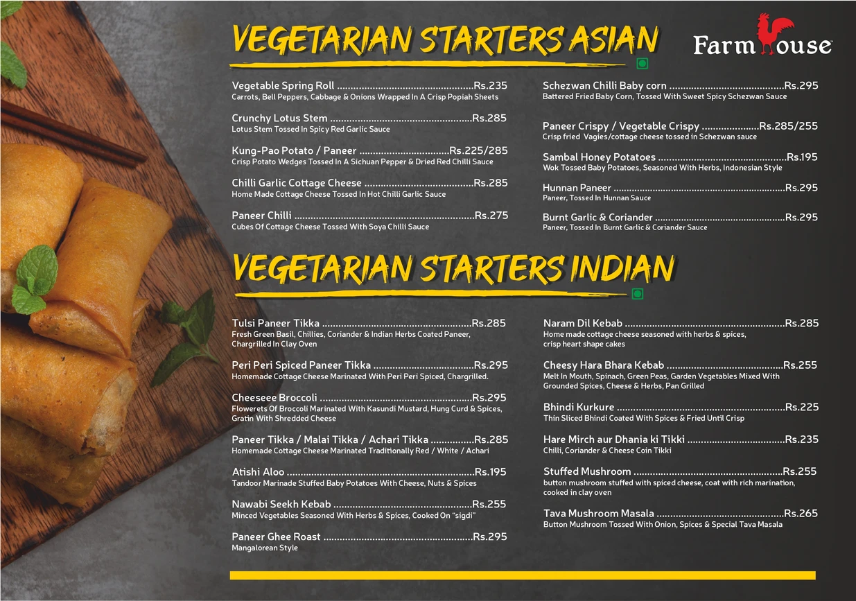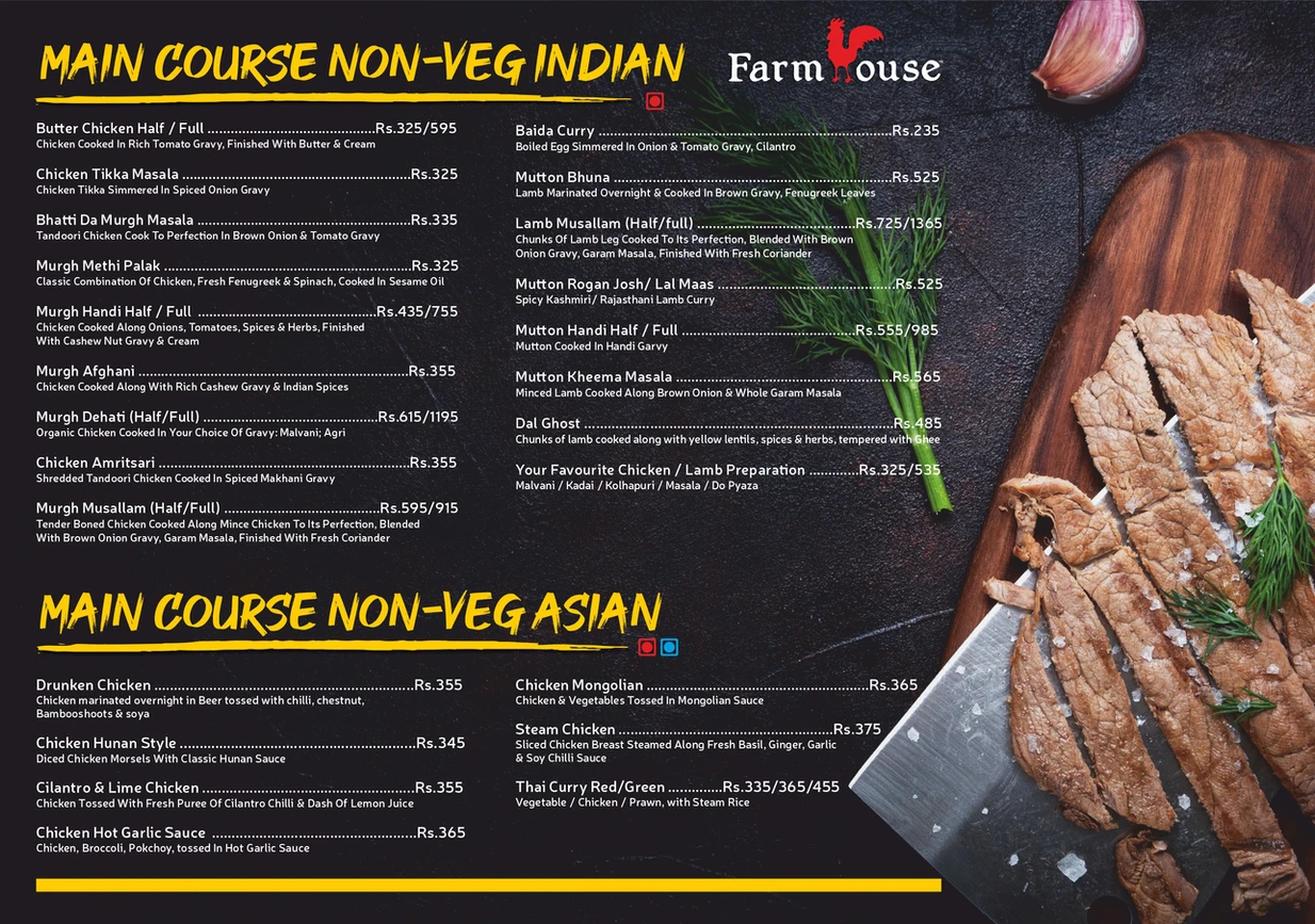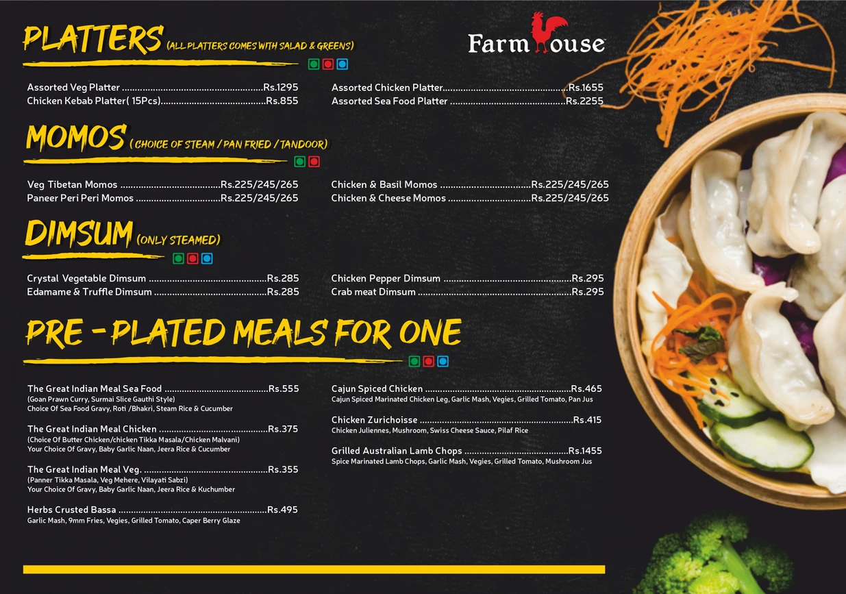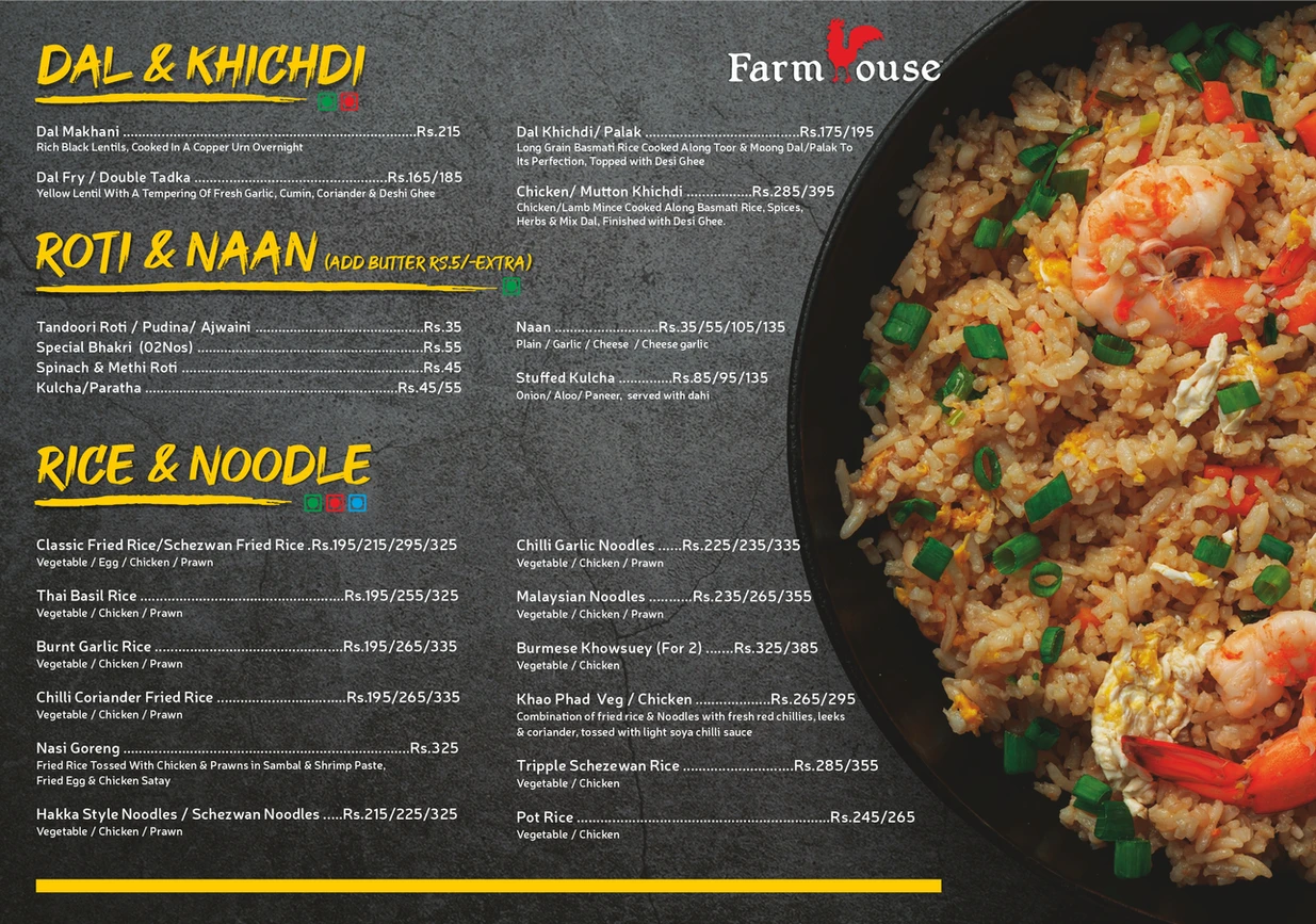 Farmhouse has a variety of foods. We serve multi cuisine and our specialty is sea food.