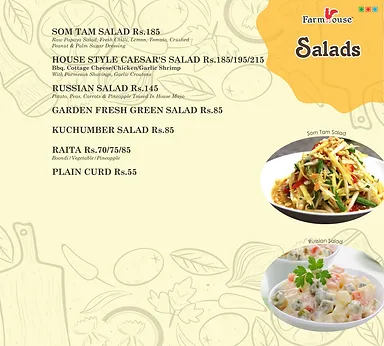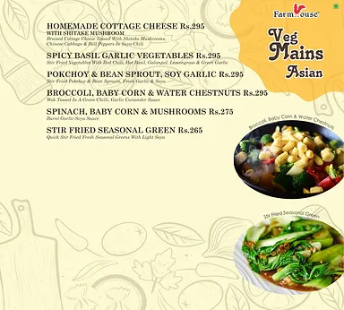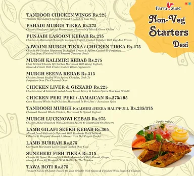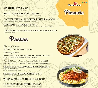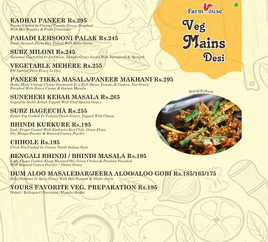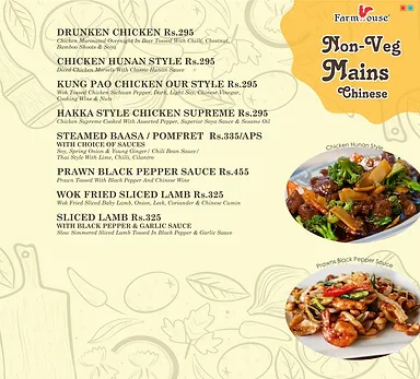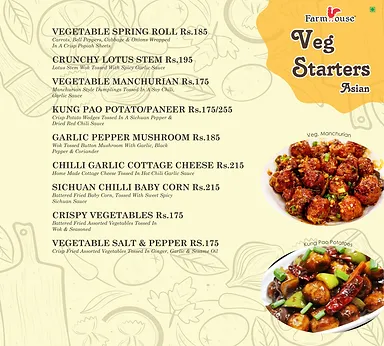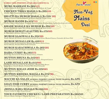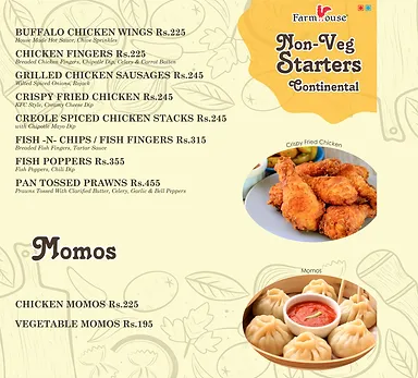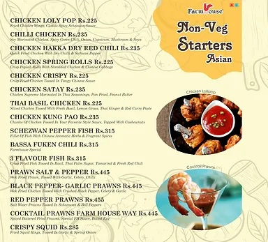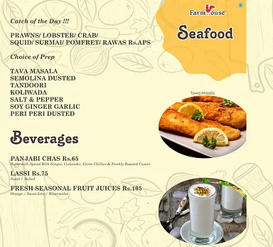 Farmhouse has a variety of foods. We serve multi cuisine and our specialty is sea food.