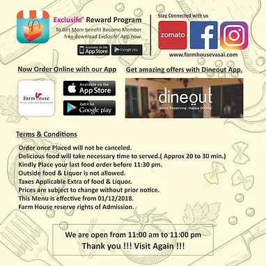 Welcome Nala Sopara, now your most favorite food joint farmhouse is more closer to you, join us at FUN FIESTA to enjoy our same farmhouse experience.